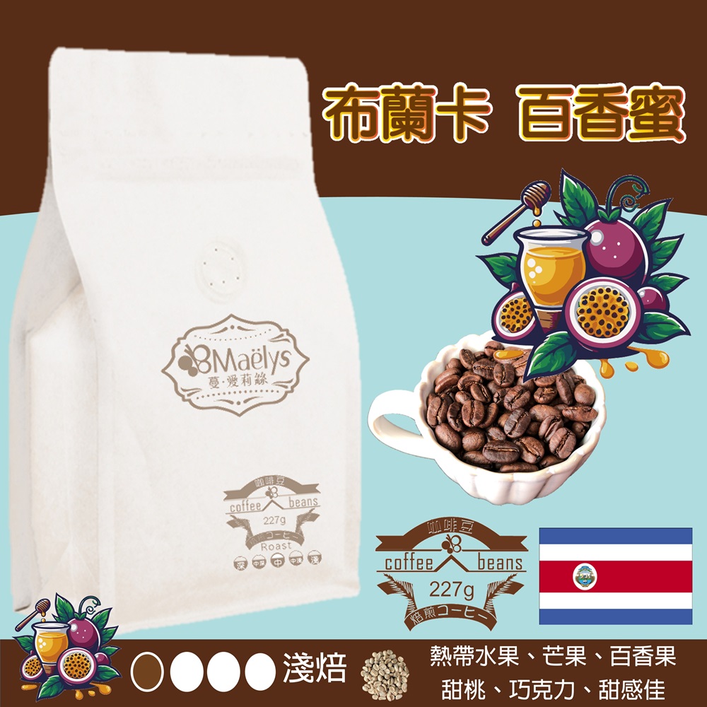 【Maelys】咖啡豆/布蘭卡百香蜜-里瓦斯人處理廠寶藏莊園/哥斯大黎加/百香蜜/淺焙/Catuairojo/1620m熱帶水果、芒果、百香果、甜桃、巧克力、甜感佳、酸質細緻、尾韻綿長