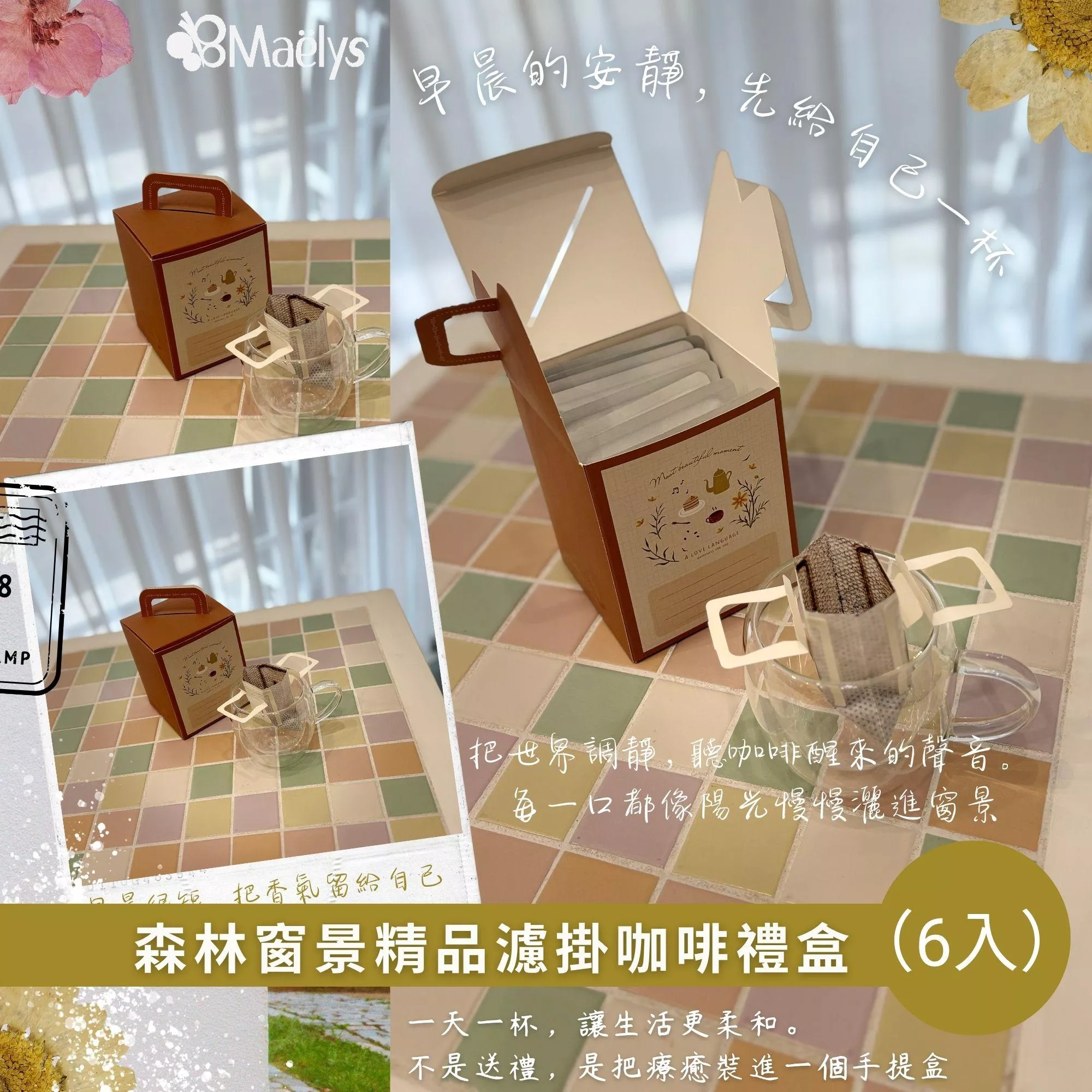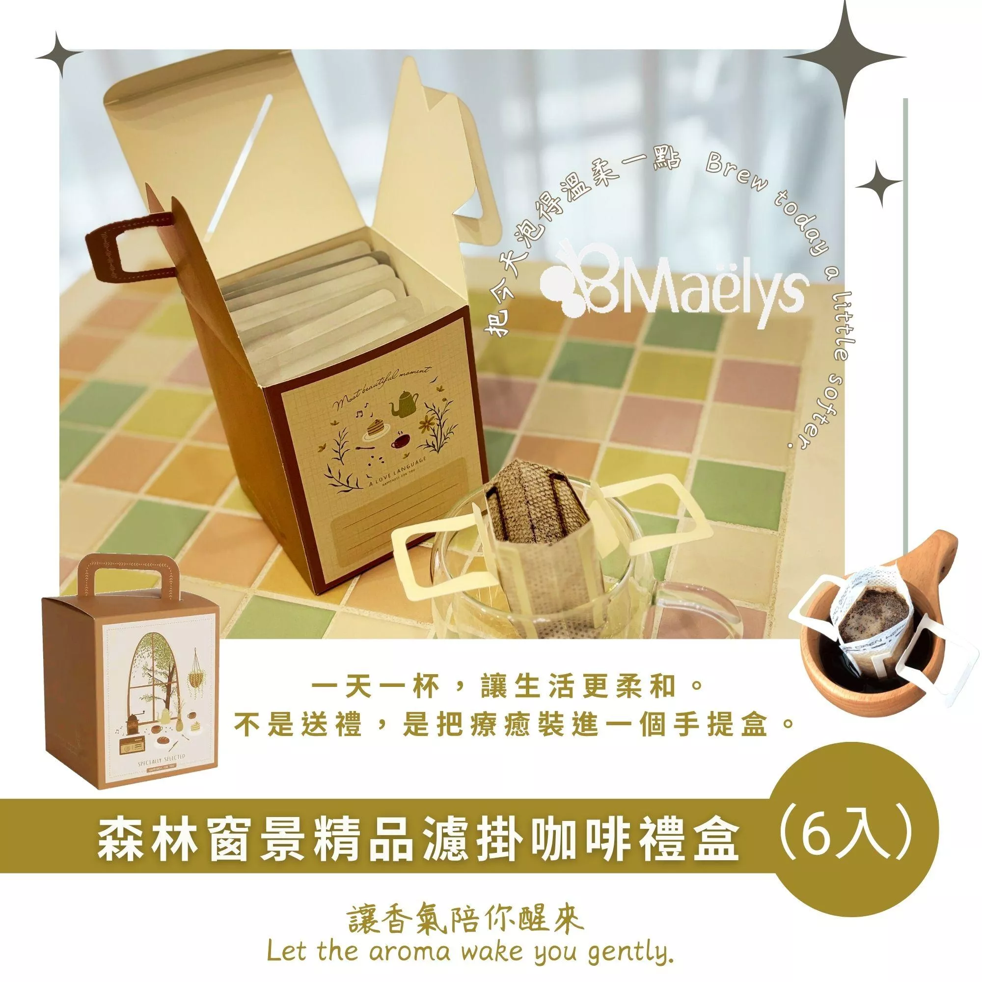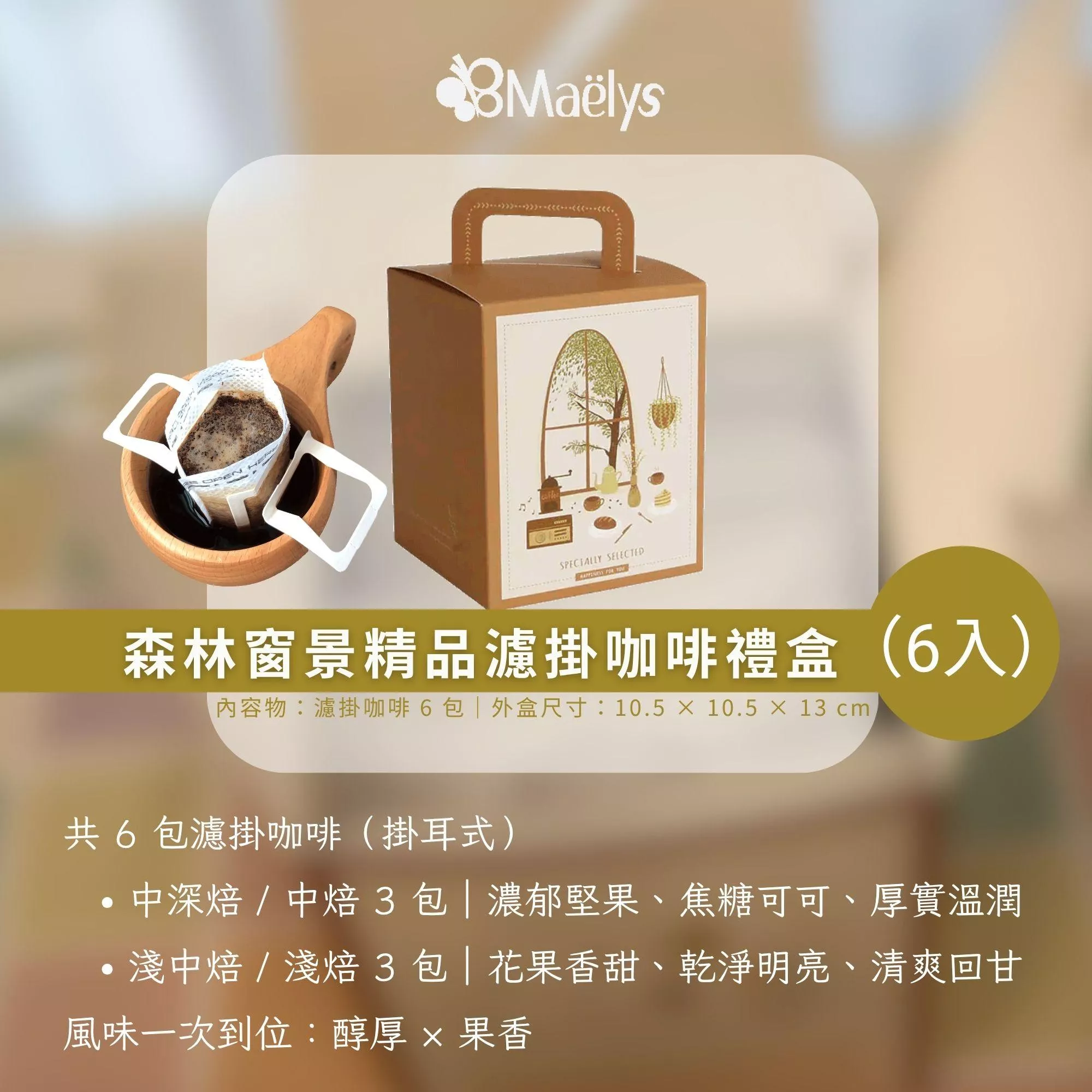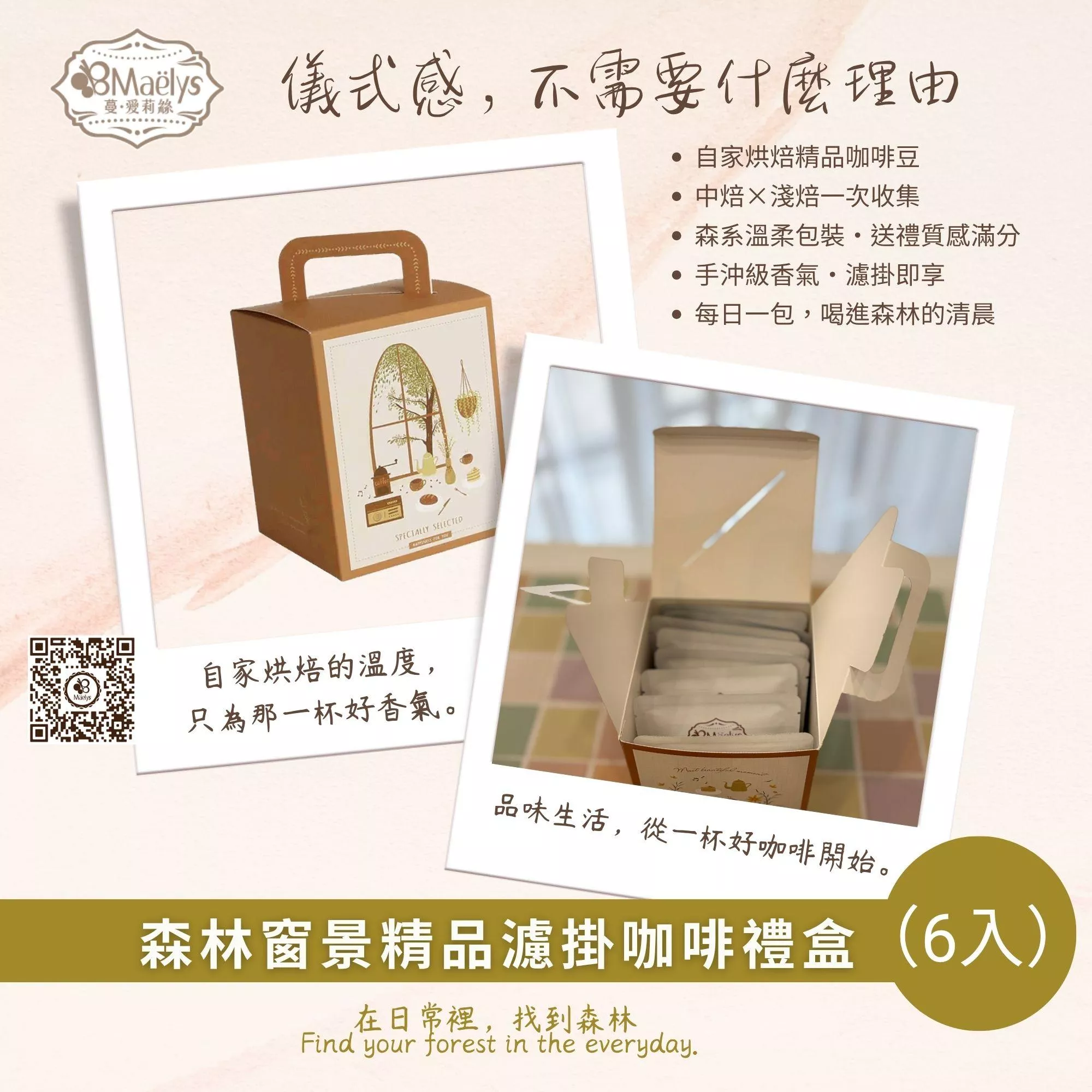 【Maëlys】森林窗景濾掛咖啡禮盒,精選 6 款自家烘焙精品豆,包含淺焙花果香 × 中深焙堅果巧克力,完美平衡每日情緒與口味。