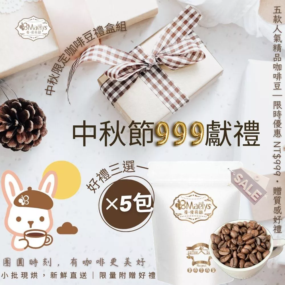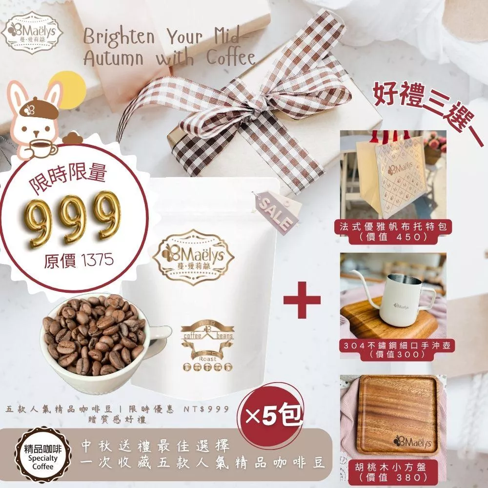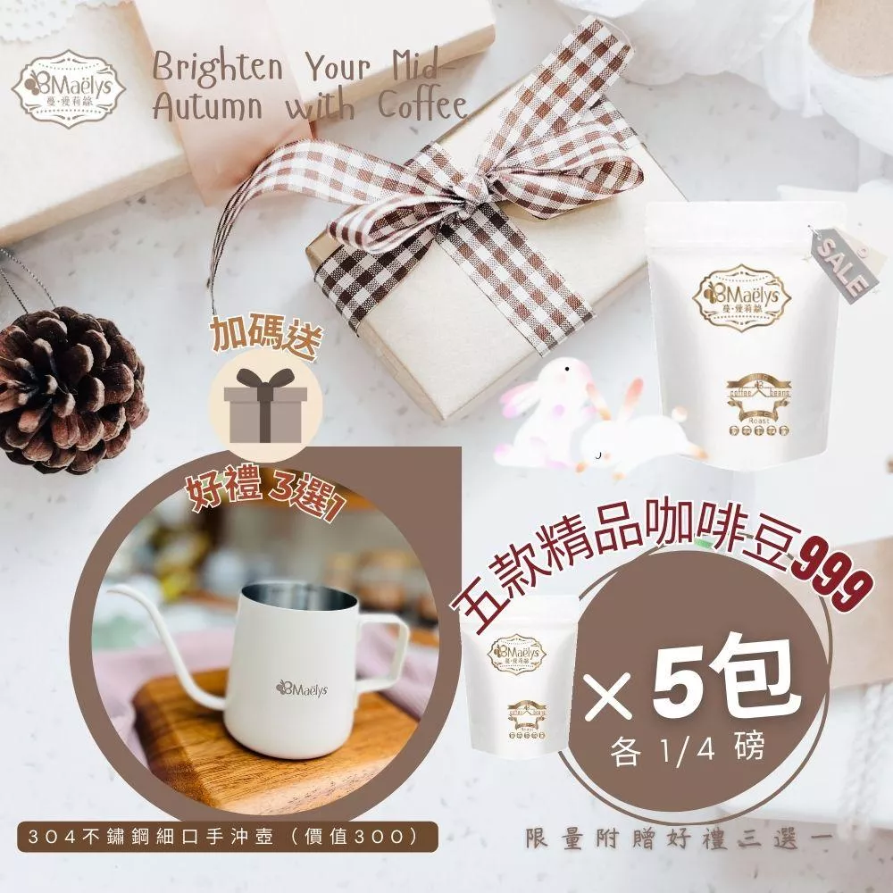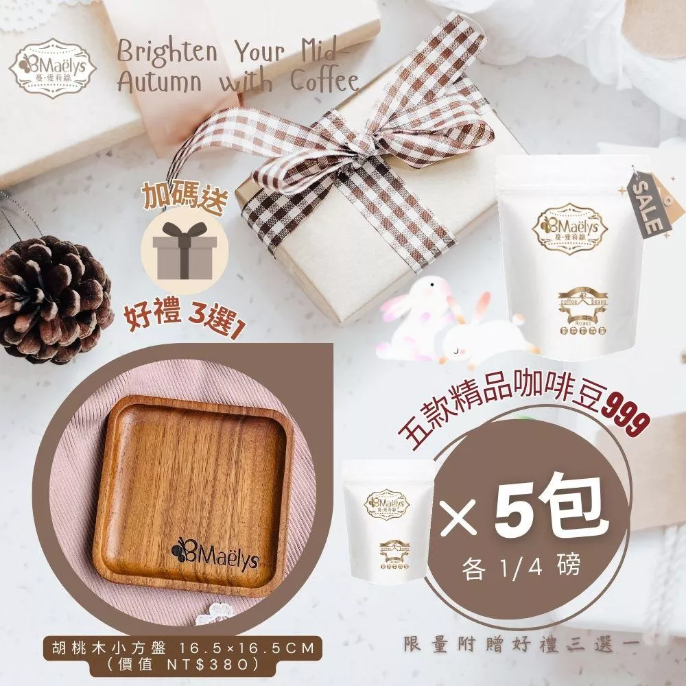 【Maëlys】中秋限定精品咖啡組|五款人氣自家烘焙咖啡豆組合(限時優惠 NT$999)